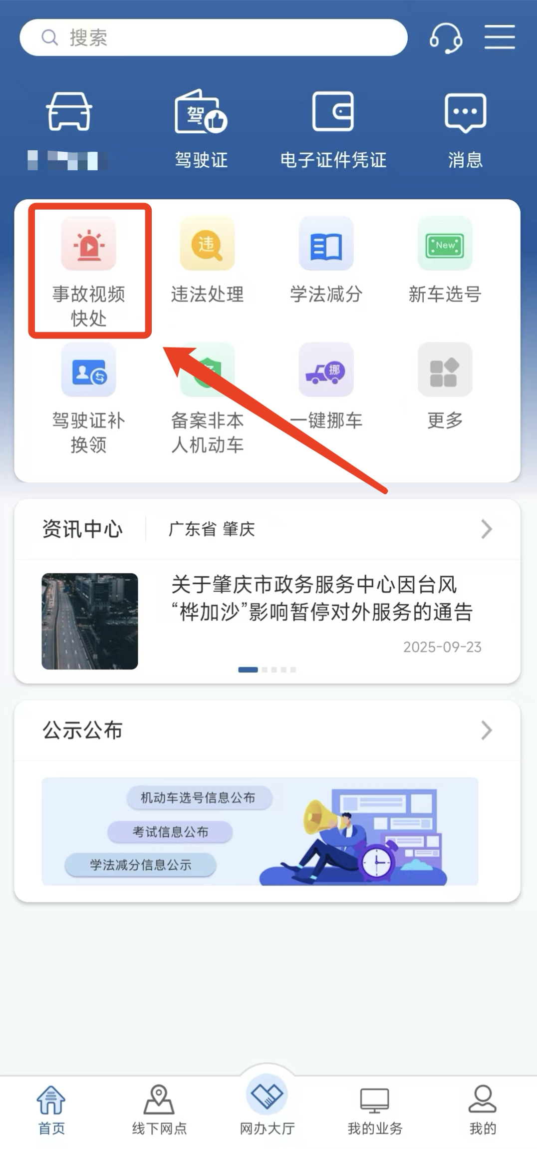 1.打开“交管12123”APP,选择“事故视频快处”功能。