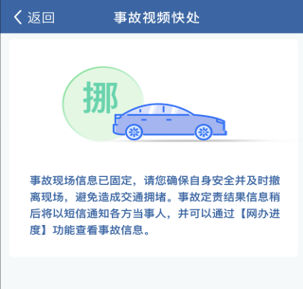 ❖ 使用简单快捷。当事人只需点击【事故视频快处】现场报警,几分钟可以完成处理,省去现场等待民警出警或者驾车去线下事故快处中心往返跑腿。